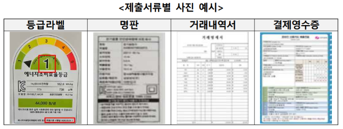 - 등급라벨 사진: 모델명, 효율등급, 적용기준 시행일자