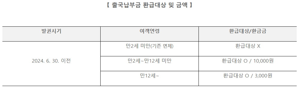 2024년 6월 30일 이전에 항공권을 발권했고, 2024년 7월 1일 이후에 국내 공항을 통해 출국한 경우 - 환급 금액