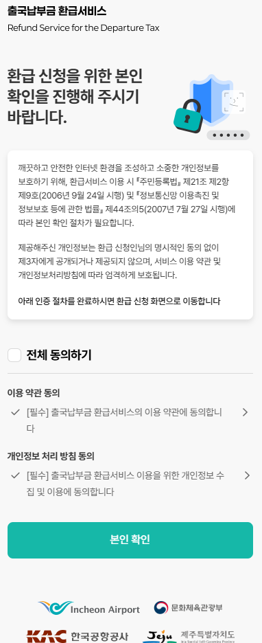 → tour‑refund.kr에서 “출국납부금 환급신청” 메뉴 클릭 - 본인인증 진행
